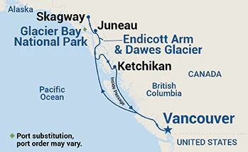 Zjutraj bomo pristali v najlepšem mestu na Aljaski, SKAGWAY-u. Zgodovina mesta je povezana z zlato mrzlico v drugi polovici 19. stoletja. Na vrhuncu zlate mrzlice je namreč pristaniško mesto Skagway služilo kot glavna vstopna točka na legendarna zlata polja in je tako hitro preraslo v največje naselje na Aljaski. Takrat je bilo živahno obmejno središče, polno trgovskih postojank, salonov in penzionov. Obiskovalci danes lahko obiščejo nekdaj zloglasni Red Onion Saloon in tako spoznajo delček življenja iz »zlatih časov«. Velik del mesta je ohranjen kot del narodnega zgodovinskega parka »Klondike Gold Rush National Historical Park«, kjer čuvaji ponujajo brezplačne sprehode po zgodovinski četrti. V mestu najdemo živahno lokalno skupnost, bogato zbirko lokalnih galerij, trgovinic z zanimivostmi in restavracij, ki strežejo sveže morske sadeže. Lahko se odpravite na izlet z legendarnim vlakom po klasični ozkotirni železnici White Pass & Yukon Route Railroad, ki ima še vedno vagone iz l. 1890. Vlak vas popelje skozi slikovito pokrajino, ob prečkanju razgibanih gora, mimo kaskadnih slapov in visokih ledenikov. Ta del železniške proge je bil prav tako zgrajen v času zlate mrzlice in velja za eno najlepših železniških prog na svetu. Na vrhu prelaza White Pass na višini 2.865 metrov lahko potniki uživajo v zares spektakularnih razgledih. Ladja bo v Skagway priplula ob 07:00 in odplula ob 20:00.