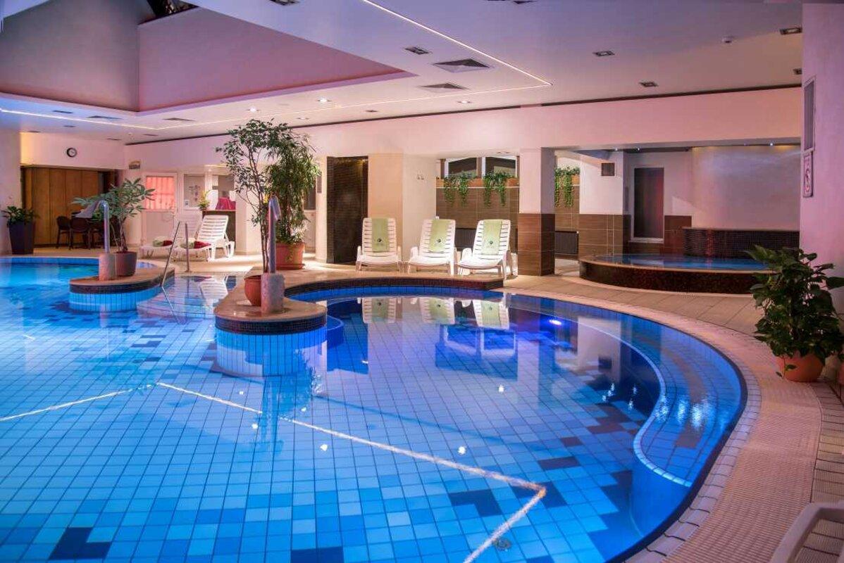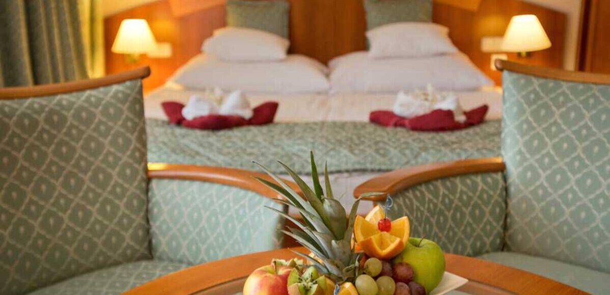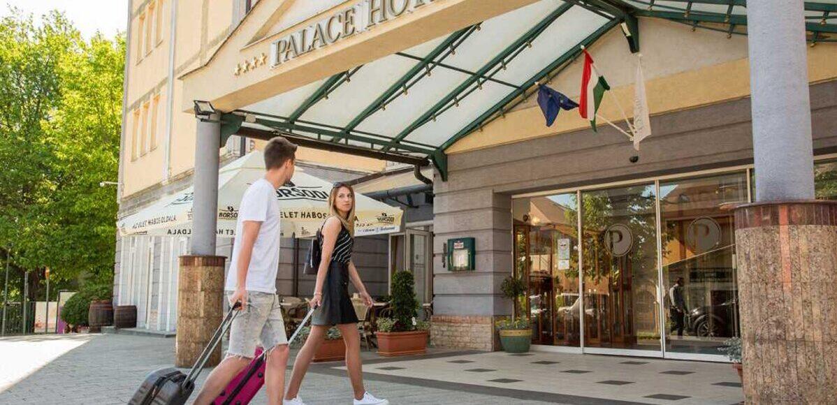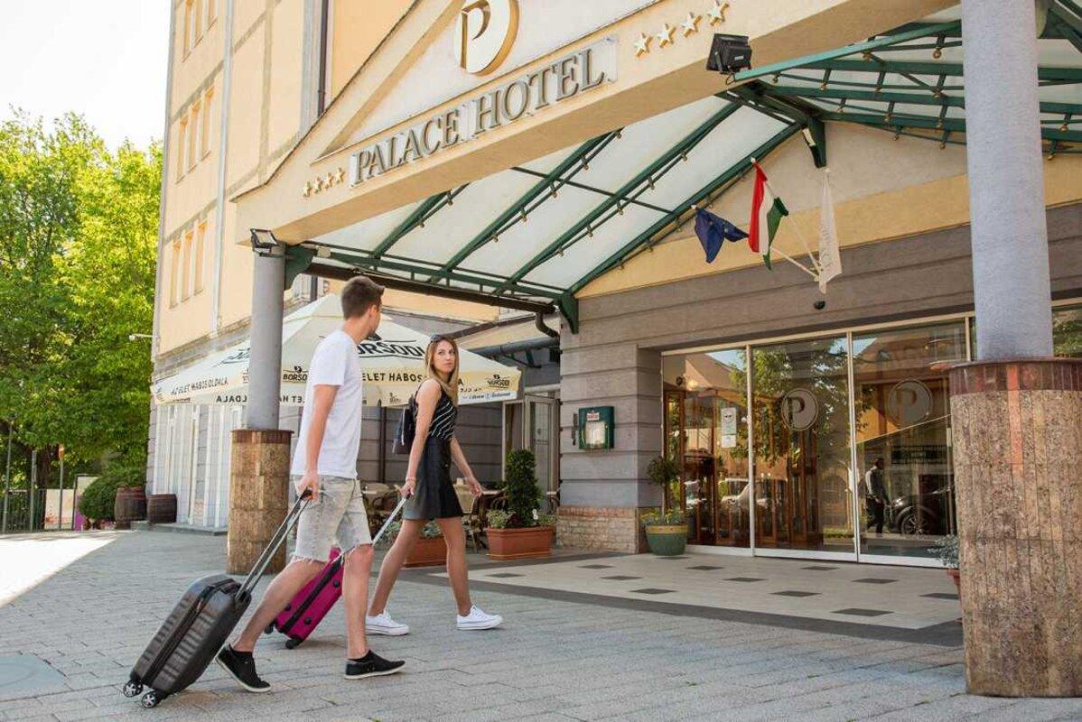 Hotel Palace**** je moderen hotel s 136 sobami. Prostorne sobe (28 m2 in več) so opremljene s telefonom, televizorjem, manjšo kuhinjo, minibarom, klimo, sušilnikom za lase, balkonom, brezplačnim Wi-Fi-jem. V hotelu so restavracija Monaarchia, kavarna ter Wellnes & Spa center z bazenom, savne in fitnes. Na voljo je jacuzzi in parna kopel, od savn pa finska savna, biosavna in infrardeča savna. Uporaba bazena in savn je že vključena v ceno bivanja. V sobah imajo gostje tudi kopalni plašč. Ob doplačilu so na voljo številne dodatne storitve Wellnessa (razne masaže, relax in beauty programi itd.). Hotel je v samem središču Heviza ob peš coni in cca. 400 m od termalnega jezera.